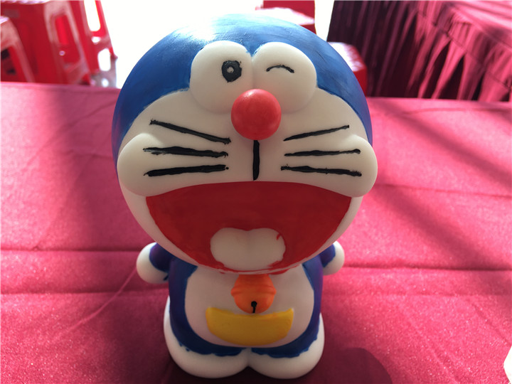 一个个色彩鲜艳存钱罐制作完成后