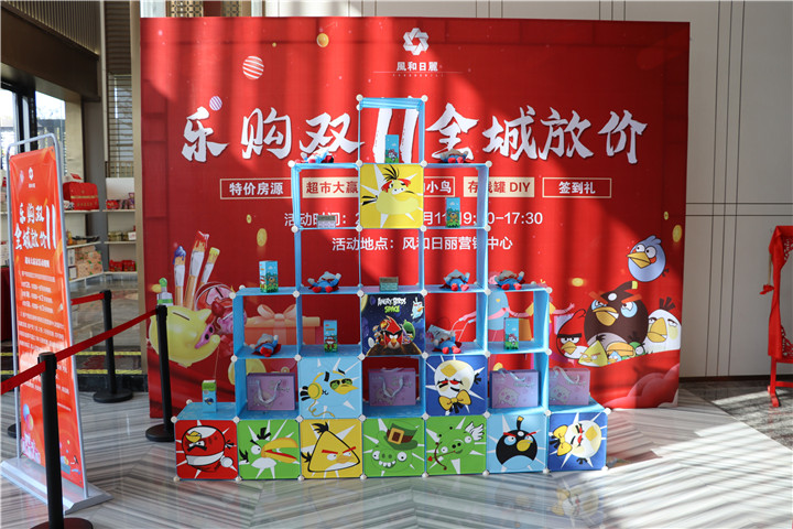 风和日丽在售楼部精心准备了“愤怒的小鸟”实景游戏