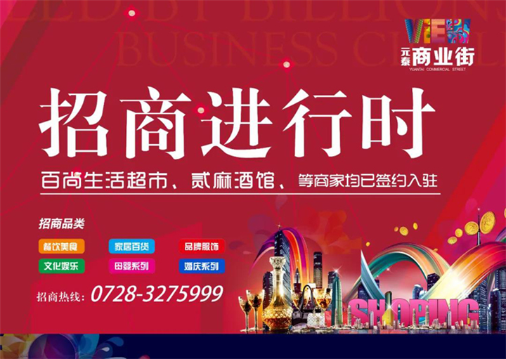 预祝贰麻酒馆开业大吉,同时也希望元泰新世界步行街与各大商户共同发展。元泰新世界步行街招商全面进行中。百尚生活超市、贰麻酒馆等商家均已签约入驻,招商电话:0728-3275999