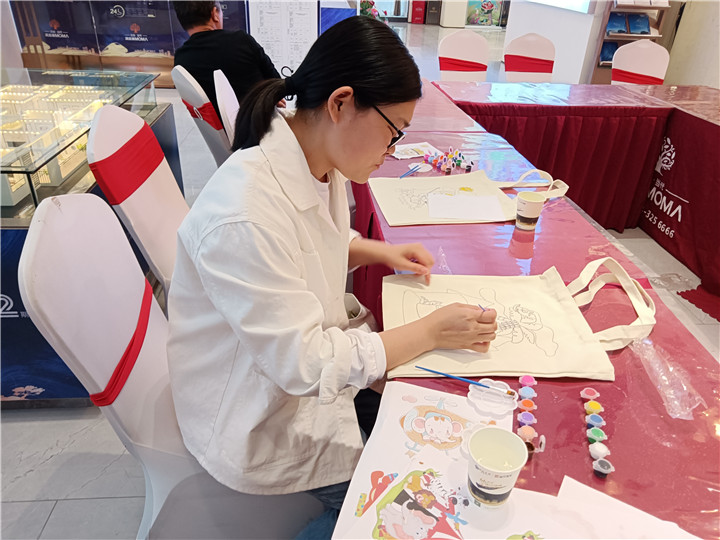 工作人员也忙着为大家提供空白帆布袋和各种绘画工具