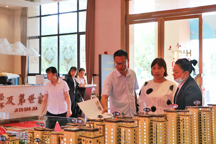 陆续来到沙盘、户型展示区等