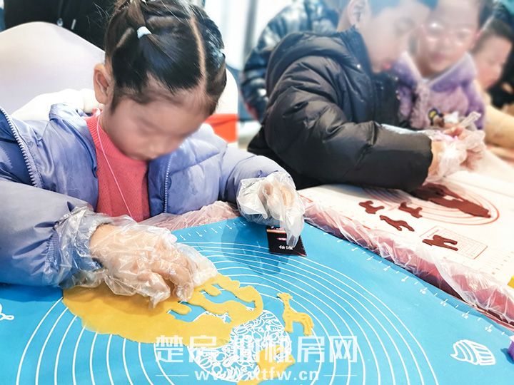 在家长的陪同下,孩子们开始动手制作曲奇饼干