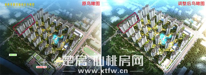 另外,从调整后的项目鸟瞰效果图可以看到,风和日丽项目原规划有楼栋共29栋,经过调整后楼栋为28栋。