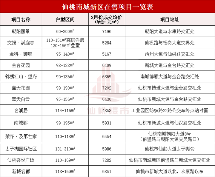 目前仙桃中学新校区所在的南城新区,有13个新房项目在售,户型在60-310平不等,这些项目产品涵盖有洋房、小高层、高层、叠墅、四代住宅等,选择丰富,房源充足。