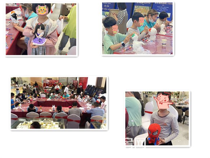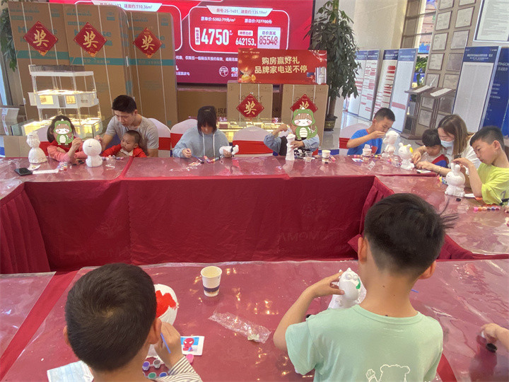 5月3号,彩陶DIY,孩子们学的可认真了,大胆的想象加上灵巧的双手,一个个造型独特、色彩时尚的人偶,脱手而出,栩栩如生,有没有发现每一个孩子都是艺术家呀!孩子们在这里玩的不亦乐乎,在一旁“观战”的家长也忍不住加入进来,和孩子一起发挥天马行空的创意,一同捏就假期的欢乐时光!大人小孩子齐上阵的场景,让整个售楼部显得异常温馨、快乐!