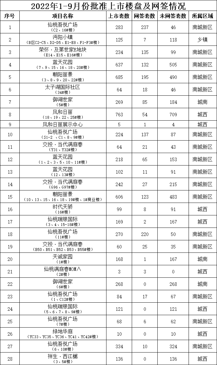 2022年1-9月份批准上市楼盘及网签情况