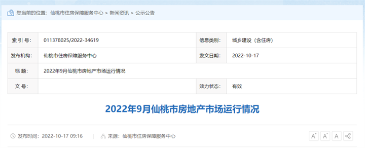 仙桃市2022年9月房地产市场运行情况