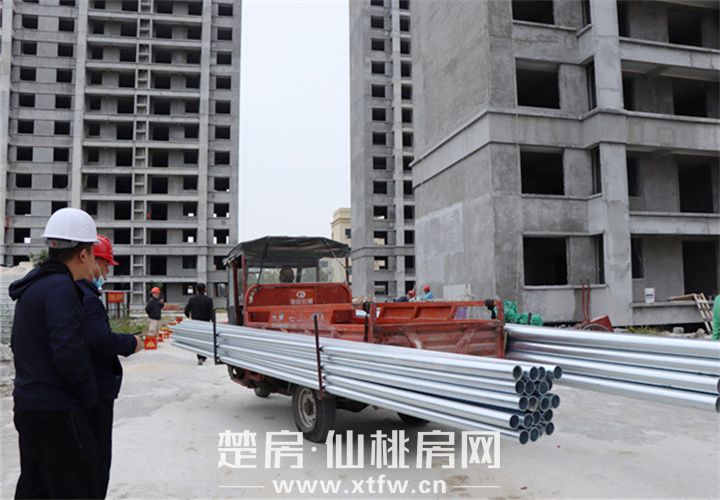 消防、配电房结构施工中;消防管道已到场;1#、2#、3#、5#电梯均已到场,已开始调运。