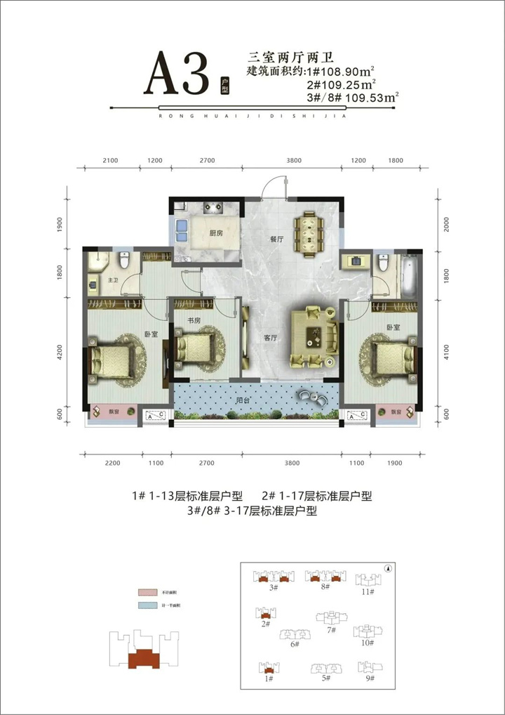 项目A地块户型多样,各功能空间分布合理、通透舒适,每一处细节都兼具空间美感与舒适度的双重价值,满足着更高的居住需求。建面约109㎡—139㎡的三房和四房,兼具功能性与舒适性,能够满足不同类型购房需求。