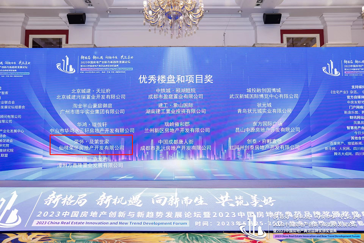 2023年5月25日,荣怀地产受邀参加“2023中国房地产创新与新趋势发展论坛”,旗下“荣怀·及第世家”项目获得【2023年中国房地产最佳教育地产典范项目】奖项。
