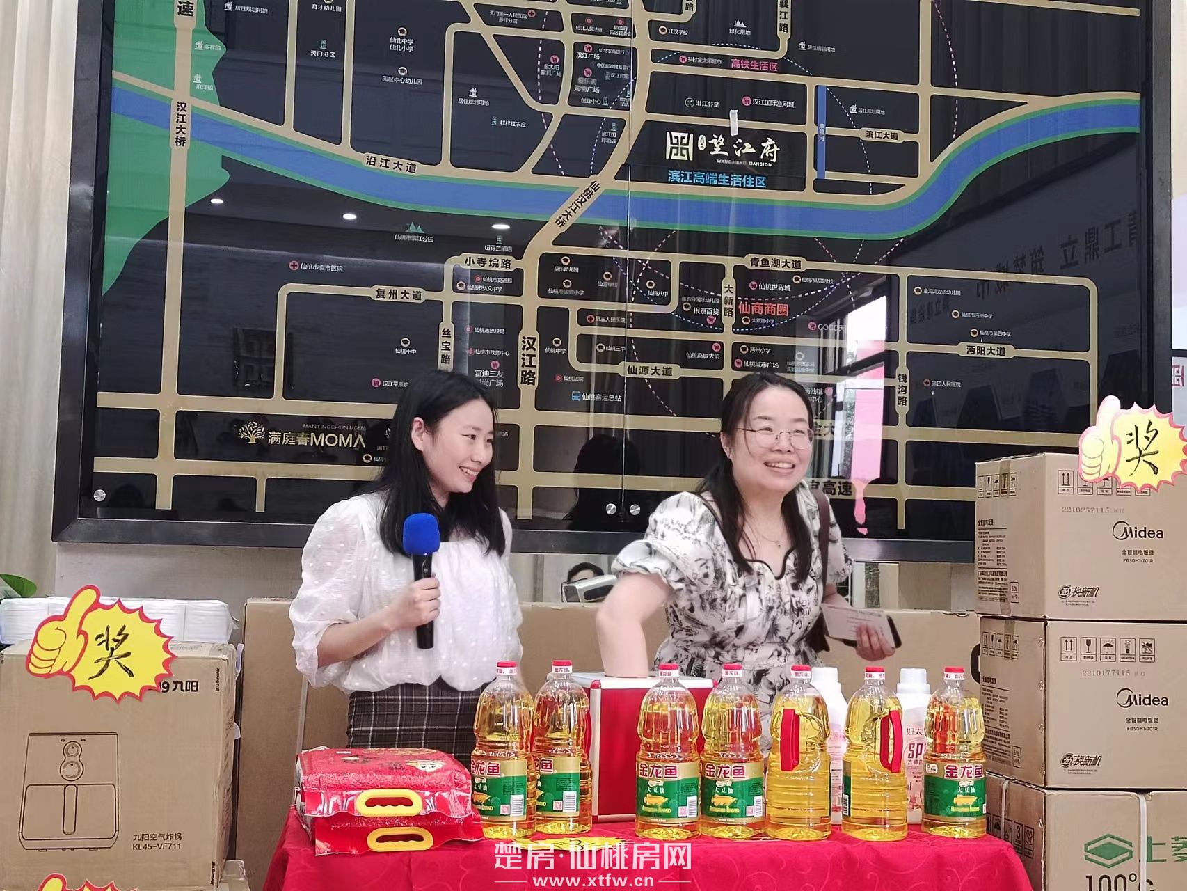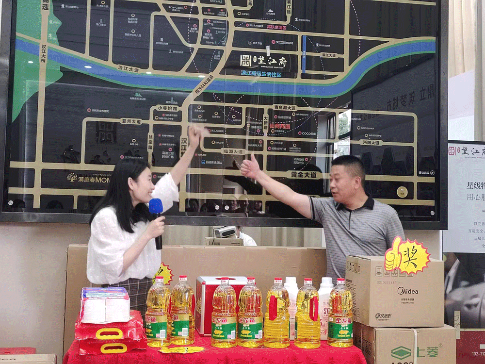 活动的最后一个环节也是最激动人心的环节:幸运抽奖。抽奖区备有丰厚礼品:空气炸锅、微波炉、饮水机、米、油……各位嘉宾依据主持人抽到的号码来领取属于自己的奖品,也有嘉宾来到抽奖台体验抽取号码。