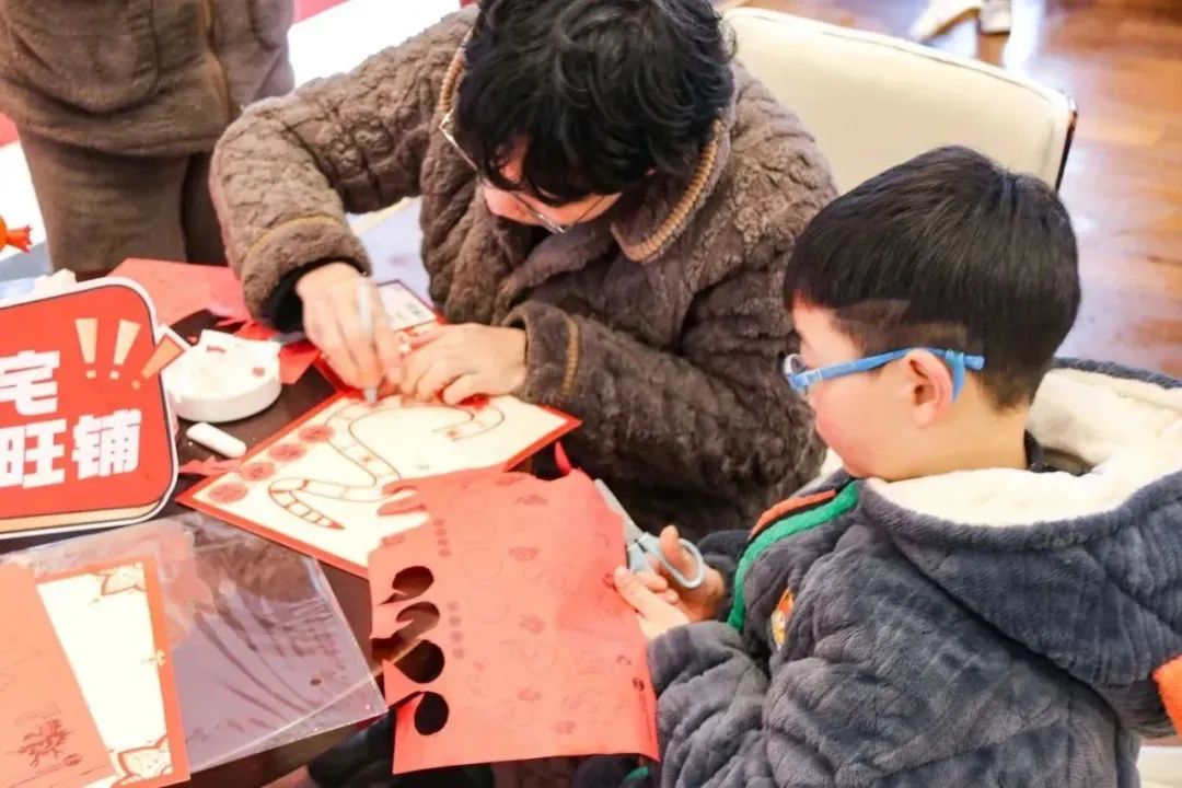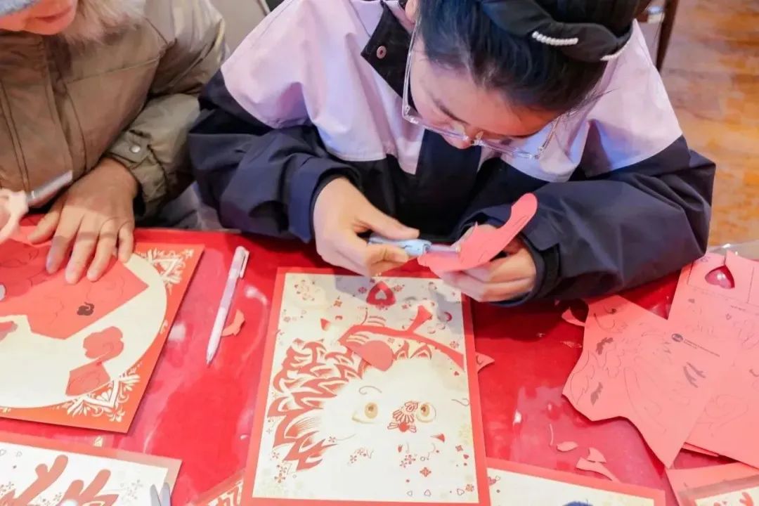 另一边,剪纸DIY活动同样吸引了众多热情的参与者。在专业老师的引导下,大家学习着剪纸的技巧,用剪刀和彩纸剪出了一幅幅美丽的作品。每一片剪纸,都承载着对美好生活的向往和对未来的美好祝愿。