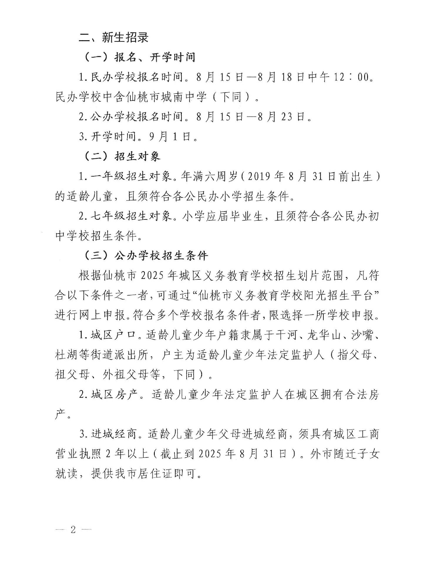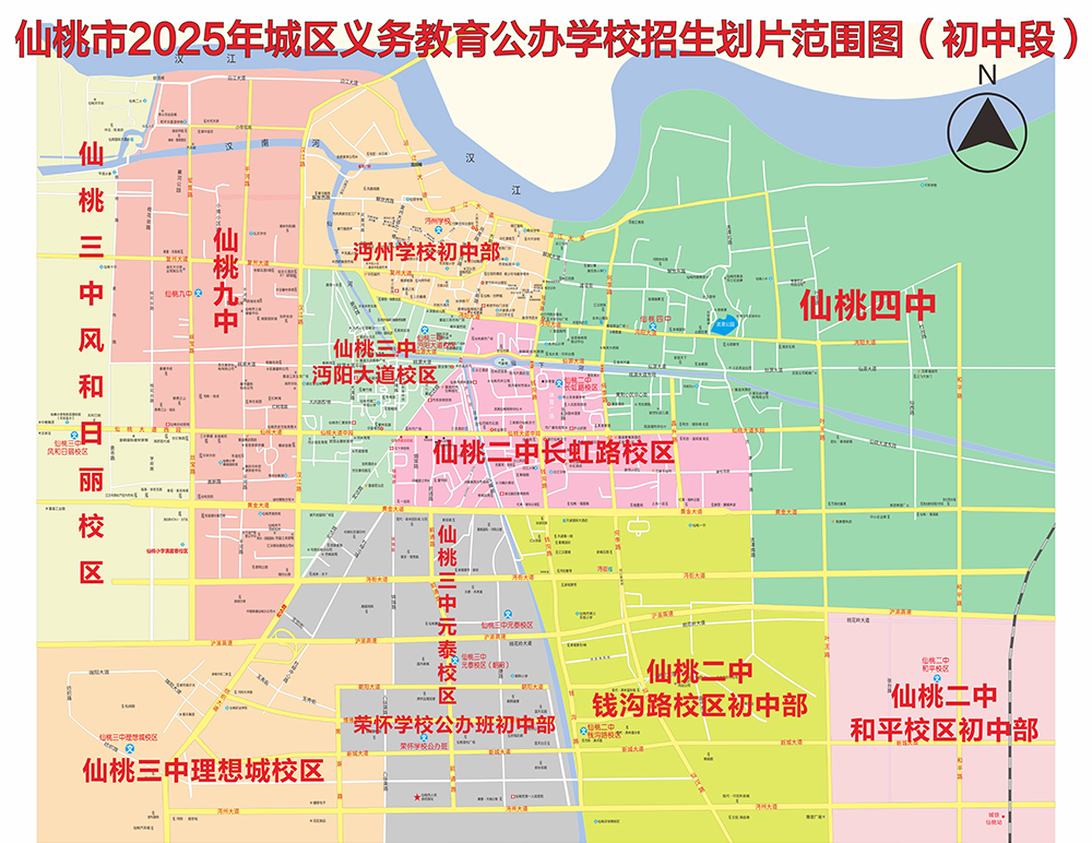 仙桃市2025年城区小学、初中招生方案及学区划分图公布!