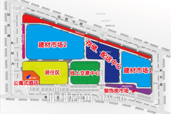 项目主要包括建材市场、装饰类市场、存储配送、线上交易、公寓式酒店、居住区等板块。