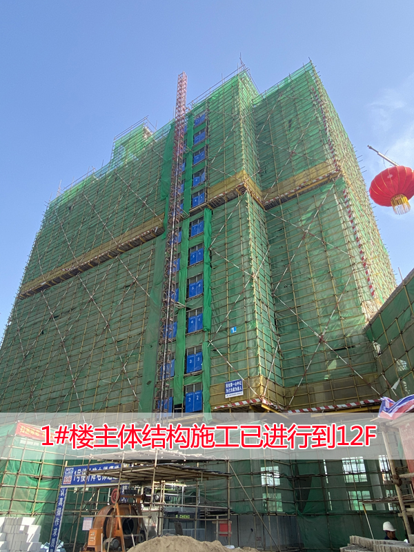 1#楼主体结构施工已进行到12F,已封顶