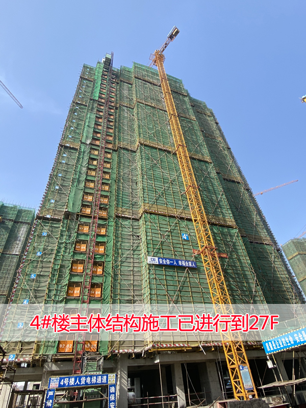 4#主体结构施工已进行到27F,已封顶