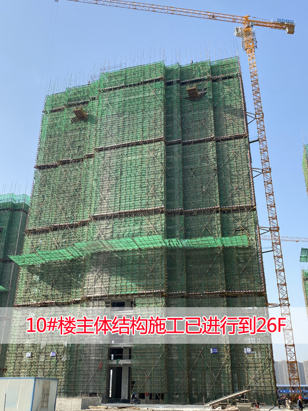 9#楼已进行到第21层,10#楼已进行到第26层;