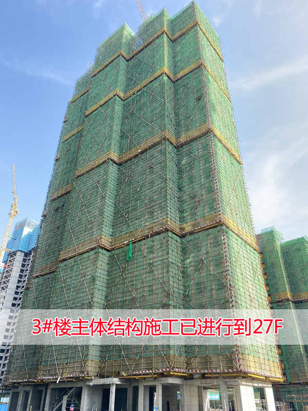 3#主体结构施工已进行到27F,已封顶