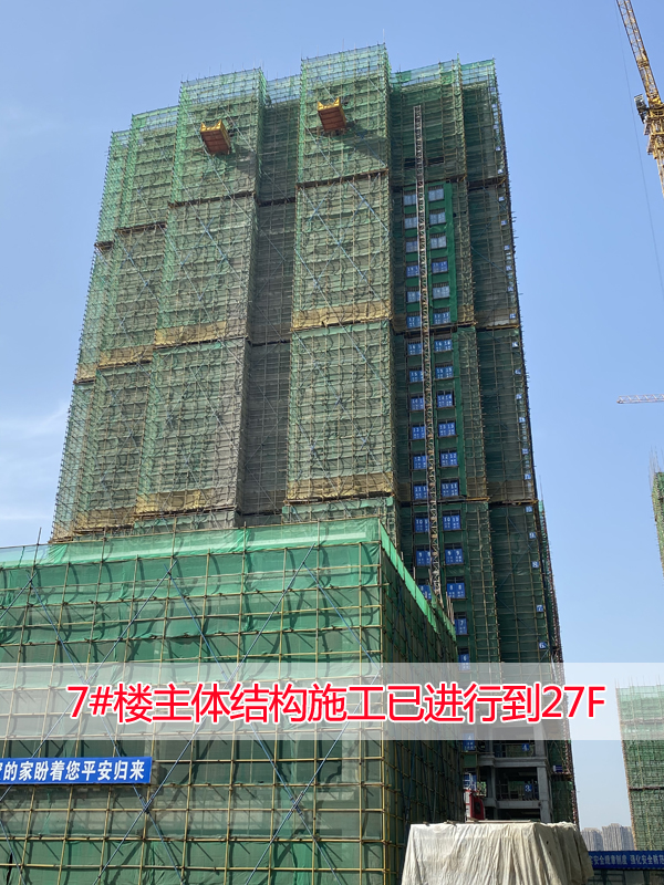 7#楼已进行到第27层,即将封顶;8#楼已进行到第21层;
