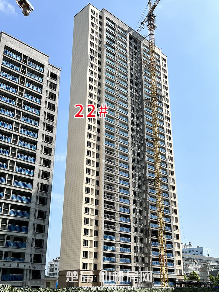 (22#外立面已完成,正在进行门窗、护栏安装中)