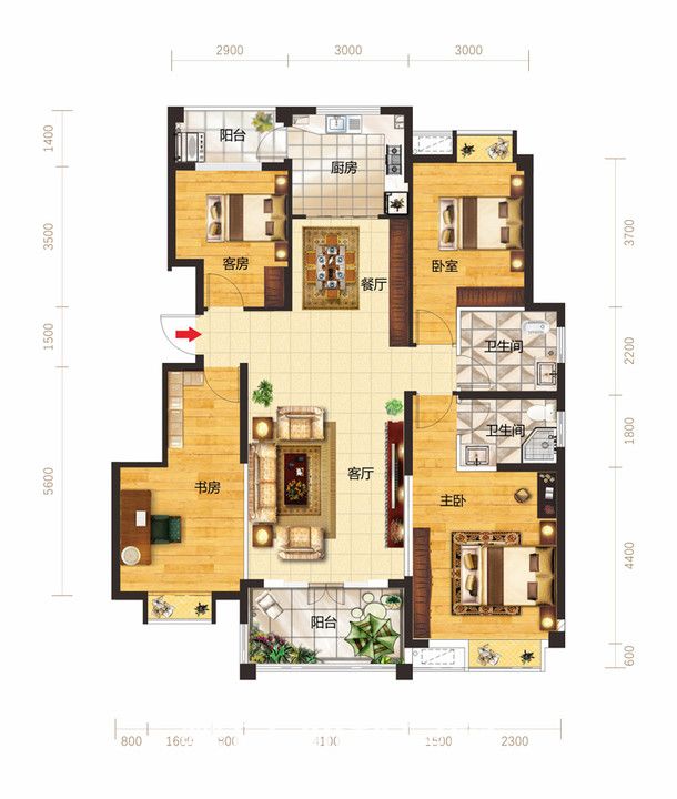 全明奢华四室,南北通透、动静分离、全方位观景客厅、餐厅一体化设计,直通景观阳台,独立书房,书香弥漫,蓄养人生境界。