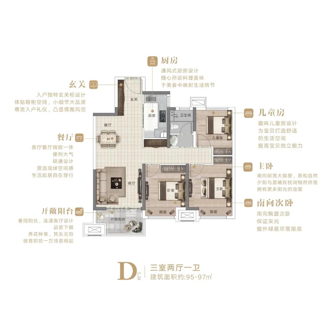 然而美好生活背后,向来有一套精巧户型为其加持。金科·御府建面约95㎡精致户型,承载你的美好时光,用精致三房,为美好护航。