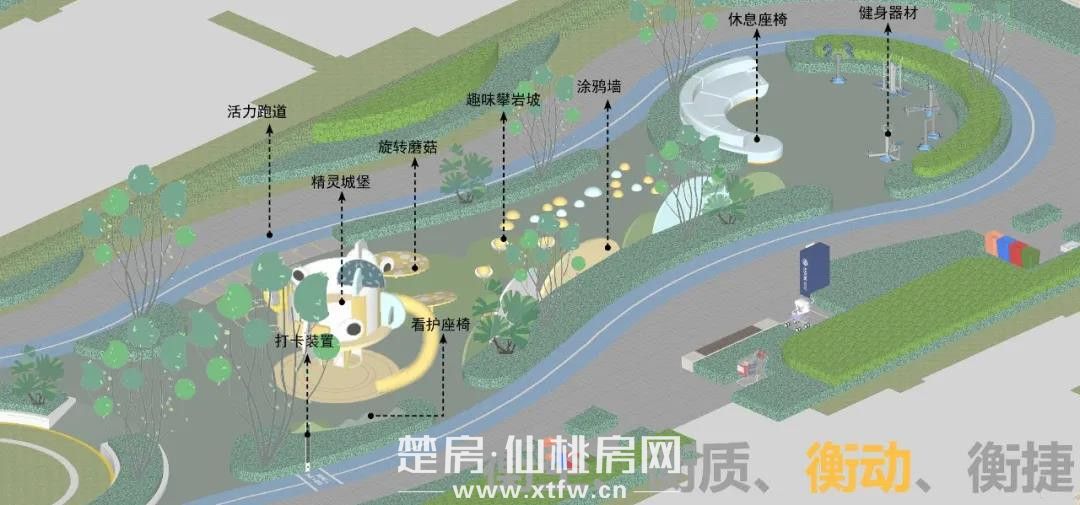 爱玩是孩子的天性。为孩子营造愉悦的成长环境,在游戏与互动中激发孩子的潜能、培养孩子的兴趣,是每个家长的期待。交投·当代满庭春MOMΛ2期以高安全标准,针对家长的期待设置全龄段儿童的活动空间。