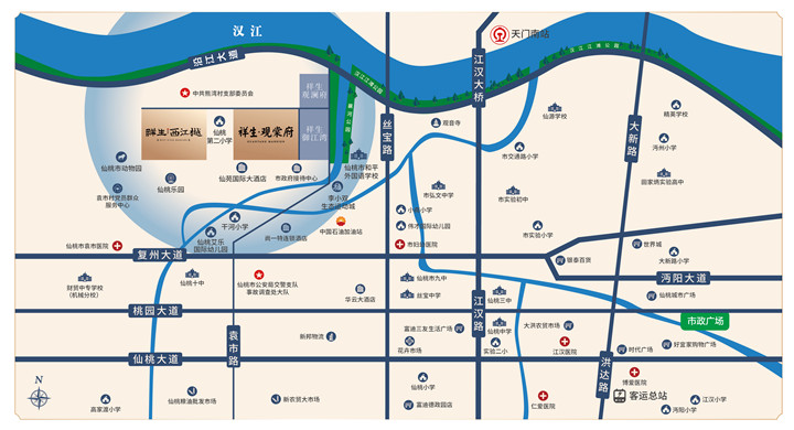 毗邻项目还有一条建造5.2公里的生态景观长廊襄河公园,北面为规划建设中的仙桃汉江江滩公园,与自然亲密相拥。
