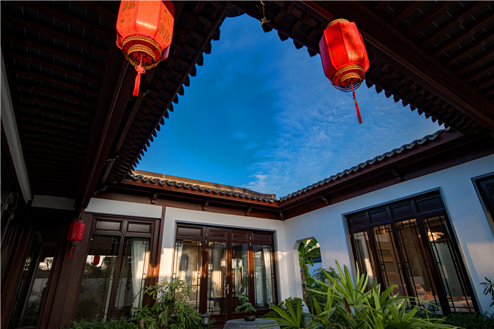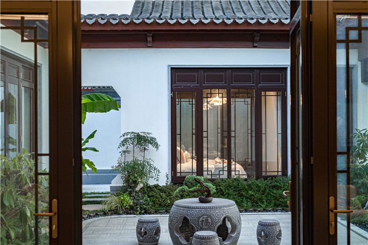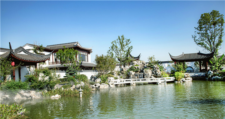【雲野梦田】秉承因地制宜、顺应自然的设计理念,依水就势建造合院组团,更优选意杨、水杉、垂柳、合欢、池杉等耐水树种,融合自然景观于院落中。近赏园林巧思,远看青山叠翠,景观自然流畅,虽由人作,宛自天开,亦彰显【雲野梦田】的匠思匠道。