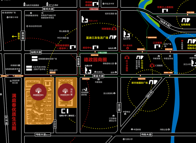 近年来,在仙桃主导北改、南拓、东进、西优的规划指引下,城西板块的居住环境可以说是十分宜人,商业、交通、教育、环境等资源全面井喷,板块价值未来可期。