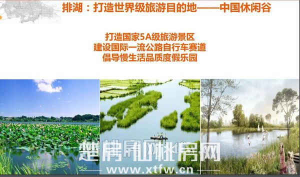 2011年10月,市第八次党代会提出,“把仙桃建成中部地区高端生态休闲旅游目的地”。市直相关部门经过反复酝酿,并与国内知名公司联袂策划,描绘出在排湖地区打造“中国休闲谷”的概念图。