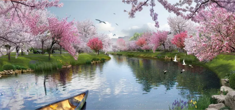 并按照“一轴六区,一体两翼”的总体布局,以天鹅湖为中心,分期建设沔阳文化体验区、运动休闲区、亲子游乐区、科普研学区、民宿度假区及田园康养区等六大片区,成就万亩东方住假胜地,以云梦古泽百里排湖为引,串联起一方江汉水乡的诗意生活。