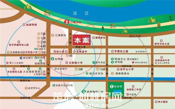 生活配套方面,项目东侧近钱沟路,直线距离武商仙桃购物中心1500米、银泰仙商购物中心1100米、富迪三友时尚广场1150米、大业通信1200米。周边还有中国银行,中国建行,中国农行,中国邮政银行,交通路菜场等其他配套围合,扼守仙桃城市之芯。