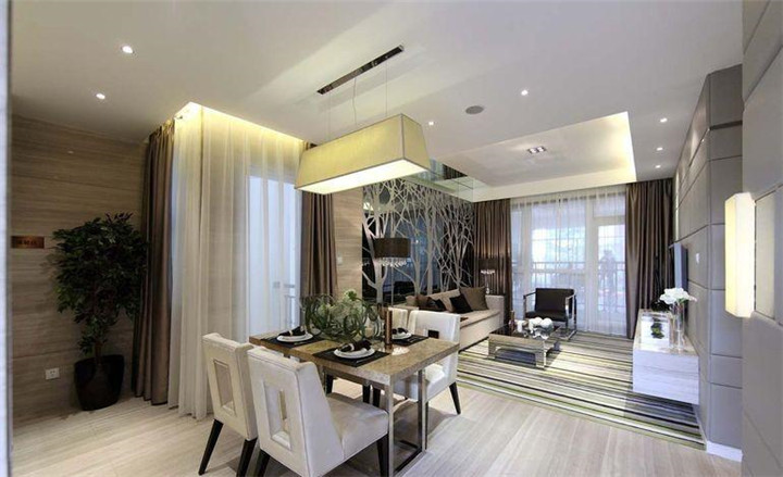 餐客厅一体设置,空间延伸相互借用,提高室内的空间感和利用率;