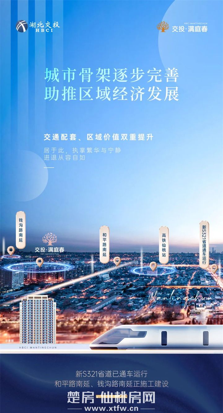 交投·满庭春由省属资产规模最大的企业——湖北交通投资集团有限公司匠心打造,实力品牌。匠心传承,只为筑就仙桃大众心中的美好生活样板,以品牌让客户安心、放心,以匠心造好房,以品质映射生活。成就一方集购物、休闲、教育于一体的66万方全能配套生活大城。