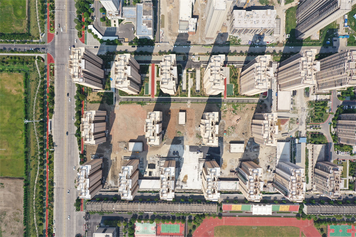 E区已经全部封顶且园林正在施工中