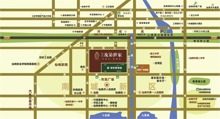 随着仙桃南进扩东进程的稳步推进,大量资源涌入南城新区,荣怀·及第世家所拥有的生活配套亦在不断完善。