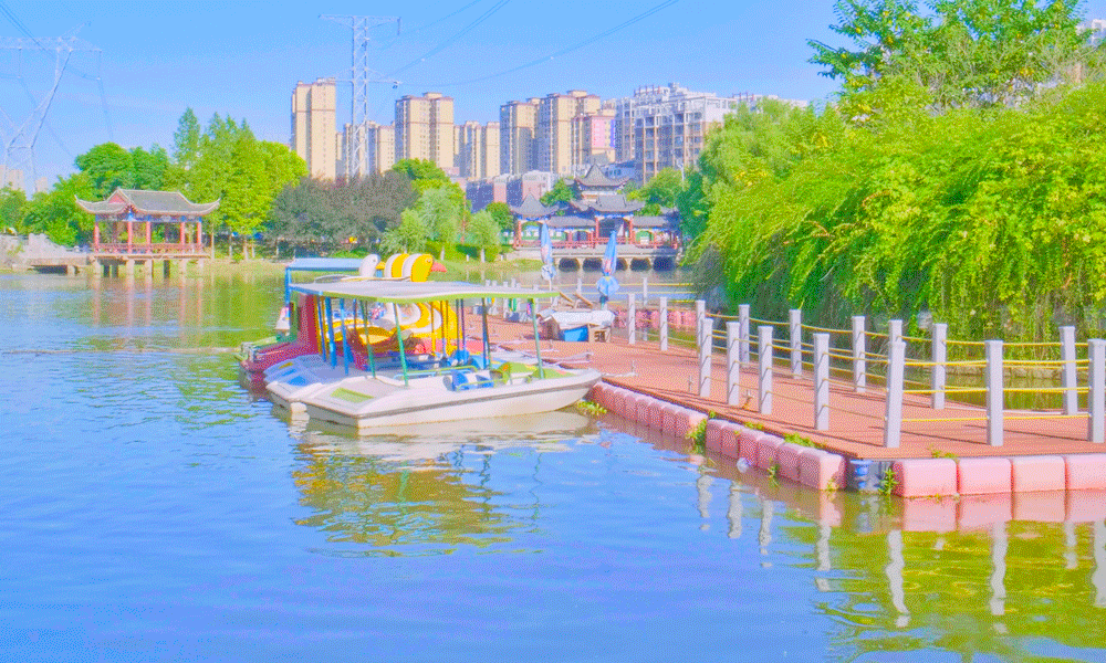 沔阳公园春季鸟语花香、夏季绿意盎然