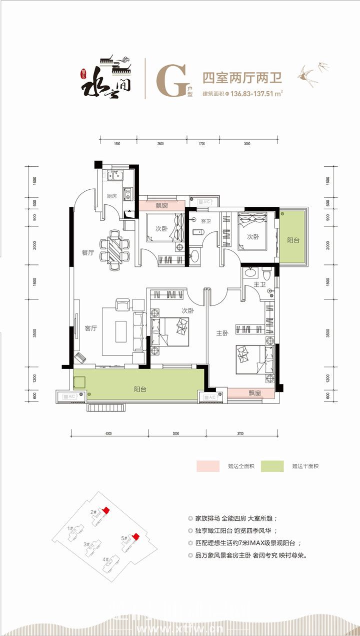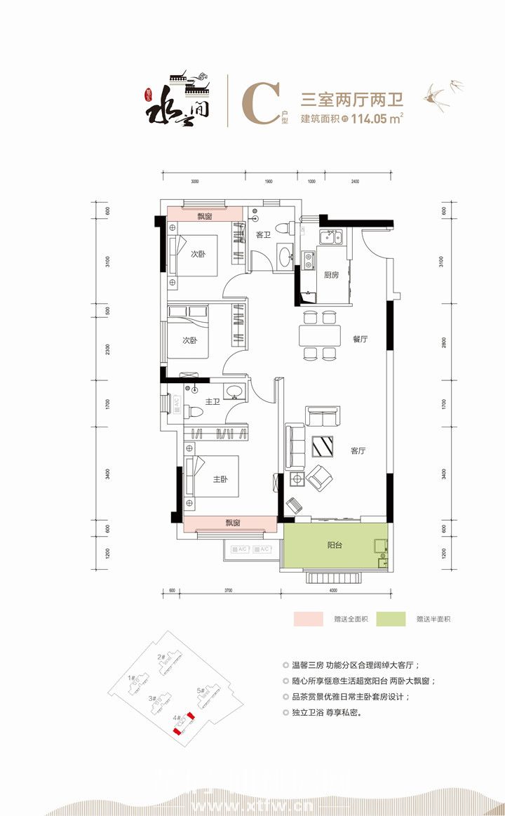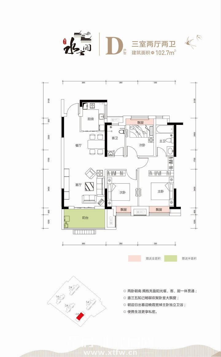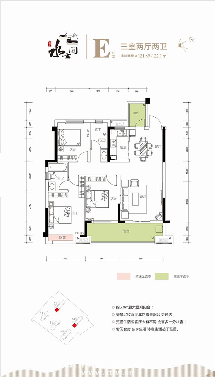 一座城市有自然水体,它就有了灵性。水云间五期,绿化主题来源于朱熹的《观书有感》,倾力打造诗句中所呈现的江南主题园林,悬挑大阳台、南北双阳台、主卧带飘窗等,在宽楼间距的设计中,享受推窗见绿的景象。