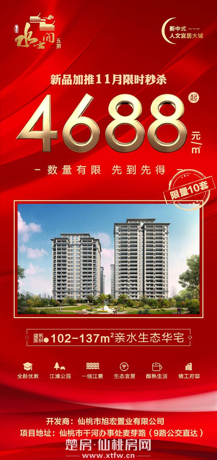 水云间五期,位于城市滨江地段,仙桃市旭宏置业有限公司开发定位北部大型生态水景宜居社区。