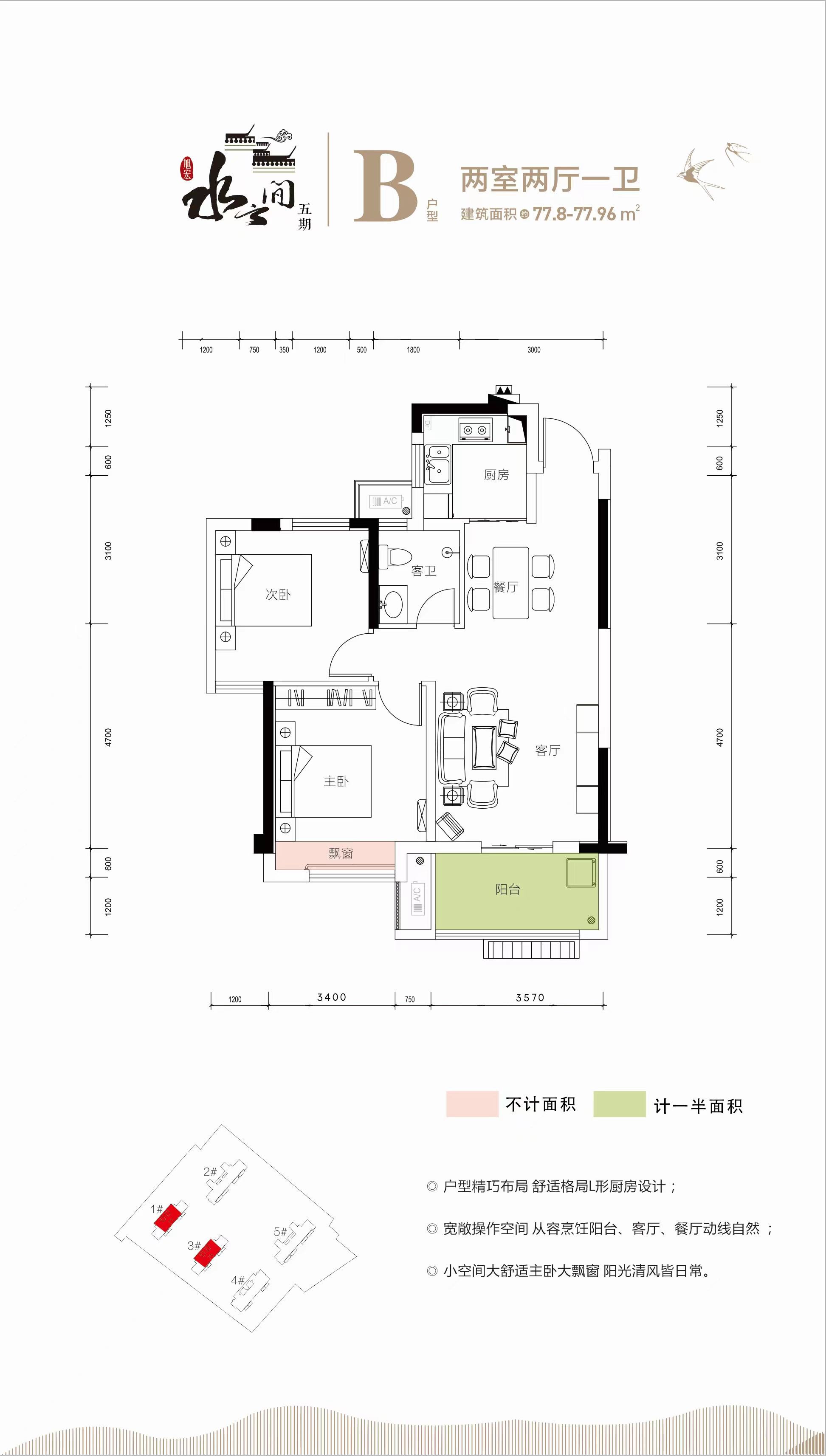 水云间五期,从居住实用性、功能性和舒适性出发,匠心打造适合居住的全生命周期户型,建面约77.8㎡精致两房、建面约102-121㎡宽境三房、建面约136㎡河景四房,不同需求的置业人群,在水云间五期,都能找到自己想要的生活方式。