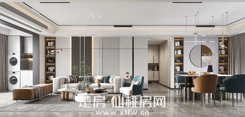 水云间五期,建面约109㎡三居,横跨南向客厅与卧室两大空间约7米的贯通式双联阳台,采光通风俱佳,将更多阳光清风收纳进屋。