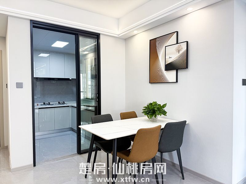 水云间五期建面约102.7㎡户型,客餐厅相连一体,厨房布局合理,高效的操作动线,让家的温度在此升腾。幸福莫过于厨房有烟火,而家也有温度。