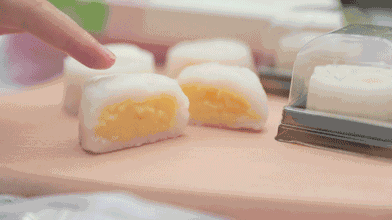 也有水果蓉等,由于不用烤焗,月饼表面不用涂油。