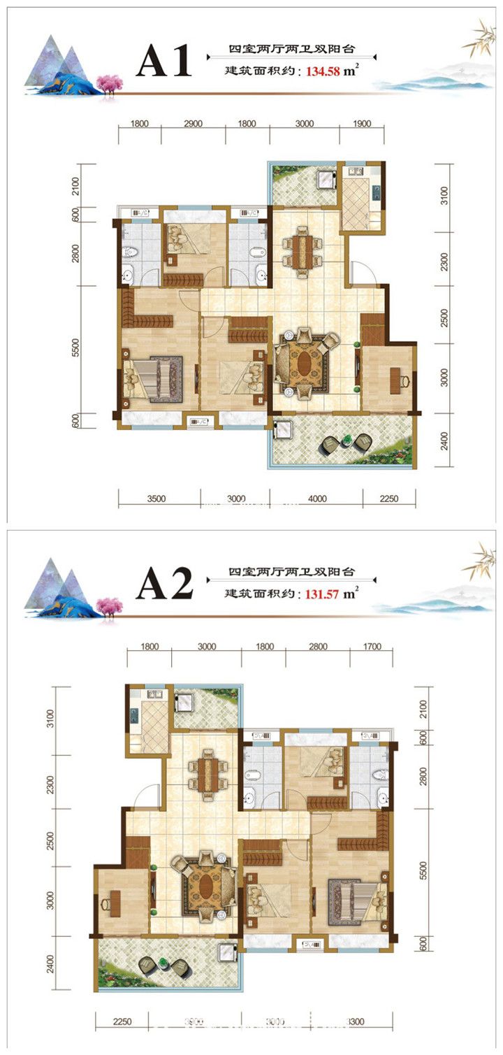 开盘首推2#,总户数36户,户型包括A1(134.58㎡)、A2(131.57㎡)
