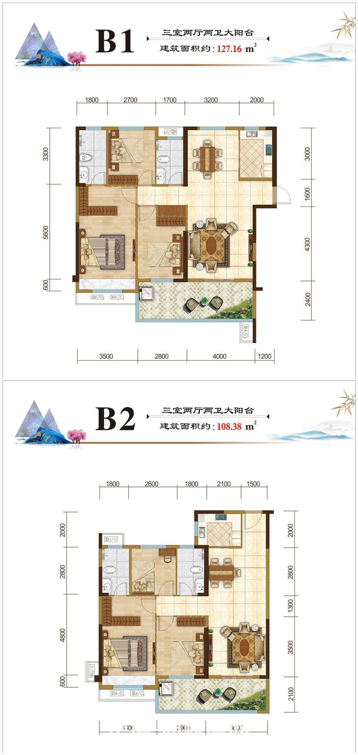 首推5#,总户数68户,户型包括B1(127.16㎡)、B2(108.38㎡)