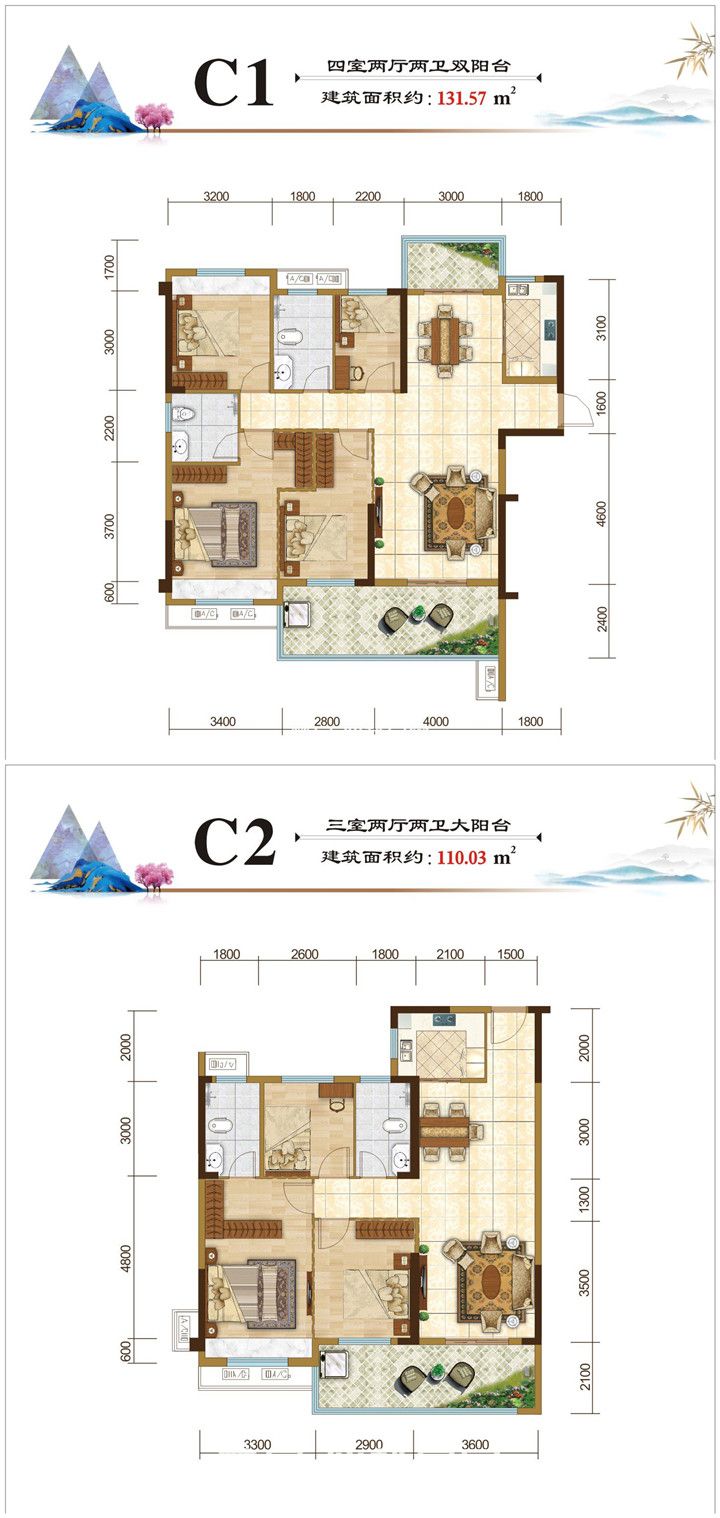 首推6#,总户数68户,户型包括C1(131.57㎡)、C2(110.03㎡)