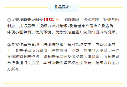 活动结束后经纪人/老业主提供视频点赞量截图、抖音账号、抖音名称、经纪人/老业主个人信息、联系方式发送至项目公众号后台,由荣怀·及第世家工作人员进行统计核对以符合奖励发放标准。