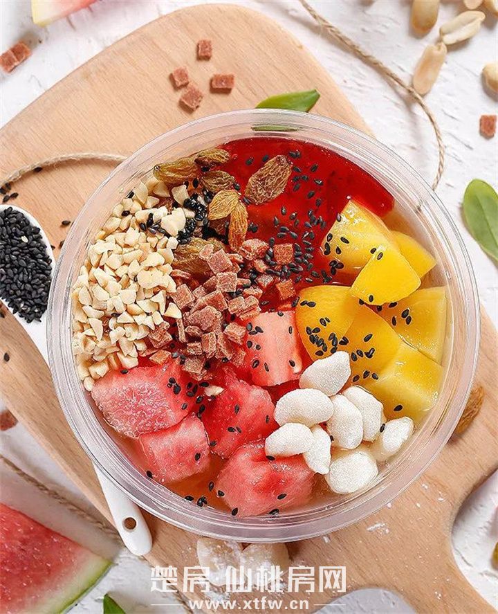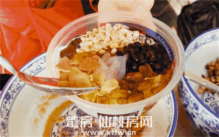 西瓜、葡萄干、芝麻、花生碎、山楂碎,还有芋圆和红豆……
