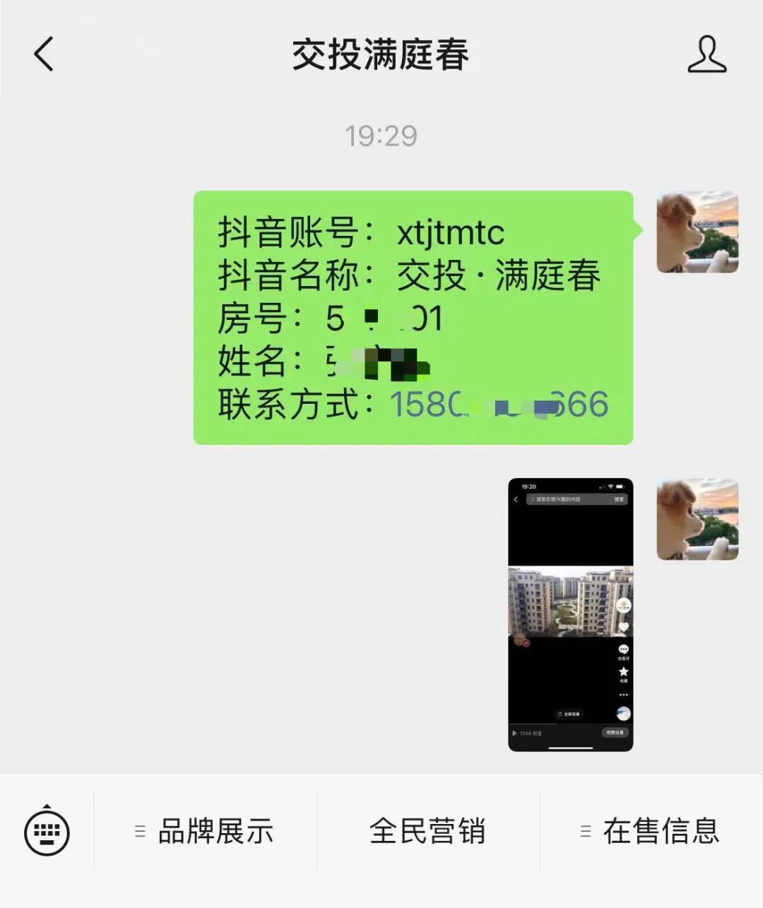 ④发布成功后,将视频截图、抖音账号、抖音名称,以及业主的房号、姓名和联系方式发送至项目微信公众号后台,即视为成功参与活动;